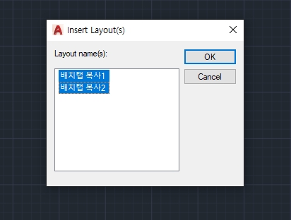 LAYOUT복사, 캐드 배치 불러오기, 여러 배치 불러오기