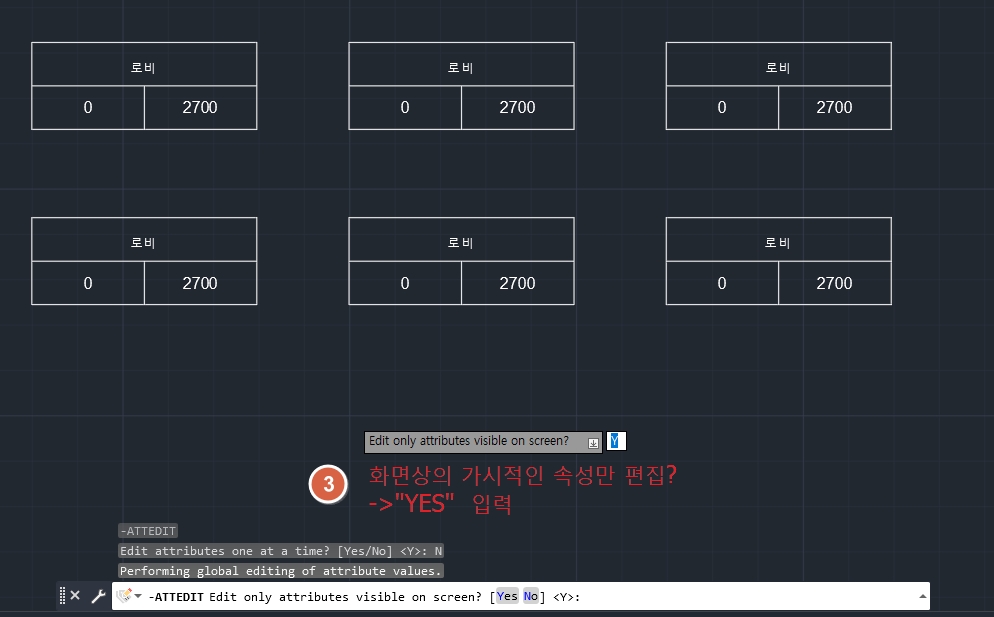 도면이 복잡할때는 어떤 블록들이 있는지 모를 수 있기때문에... 내가 원하는 객체만 선택해서 그 객체들만 수정하려고 yes 선택함.