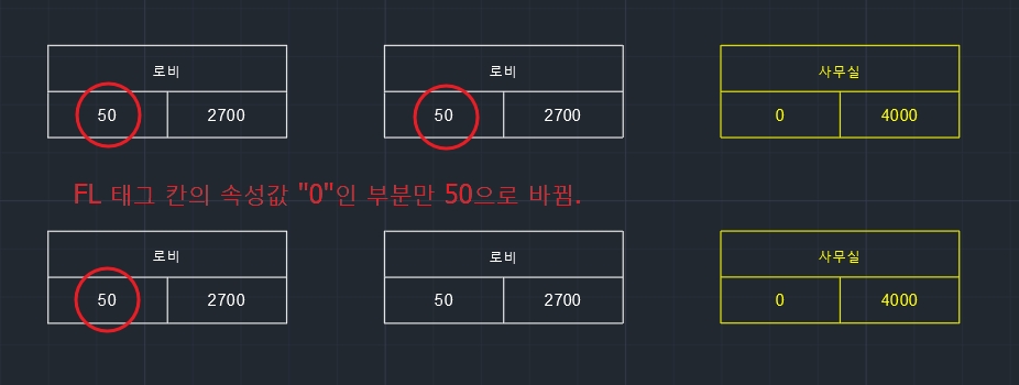나는 실명박스(블록이름)의 FL(태그)을 50(값/Value)으로 모두 맞추고 싶다.