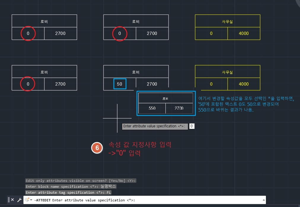 속성 블록 텍스트 일괄 수정, ATTE, 속성 글자 수정
