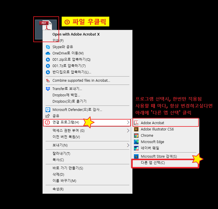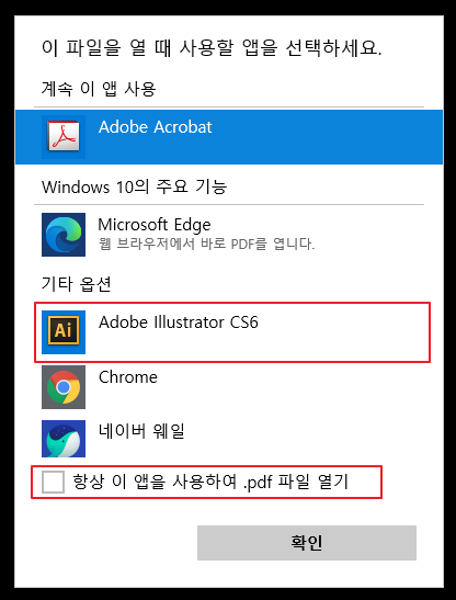 4. 이용하고자 하는 프로그램 선택 및 '항상~' 체크